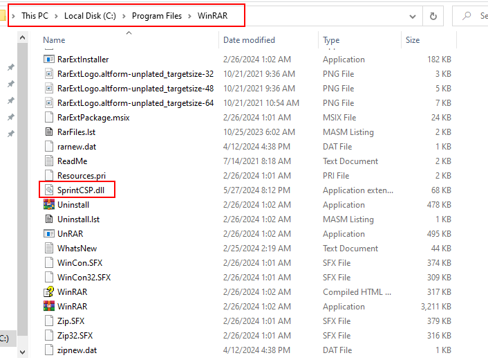 - SprintCSP.dll: which can be placed to exploit the DLL Hijacking.