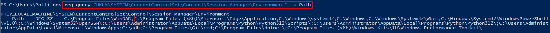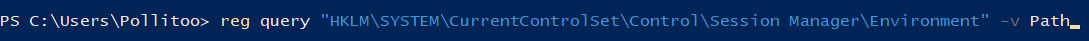 reg query "HKLM\SYSTEM\CurrentControlSet\Control\Session Manager\Environment" -v Path